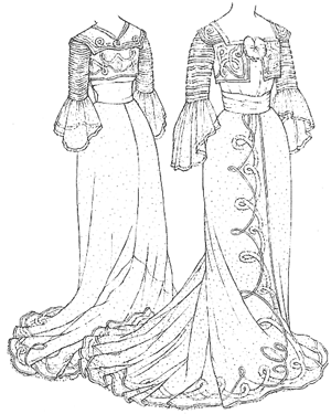 dress being hand sewn. From Janet Arnold's book "Patterns of Fashion". |