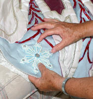 Quilted collar is hooked between the rows. |