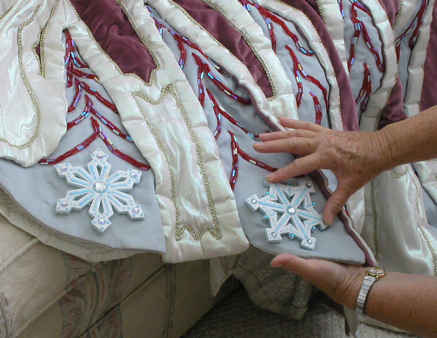 The robe hem has space for each snowflake. |
