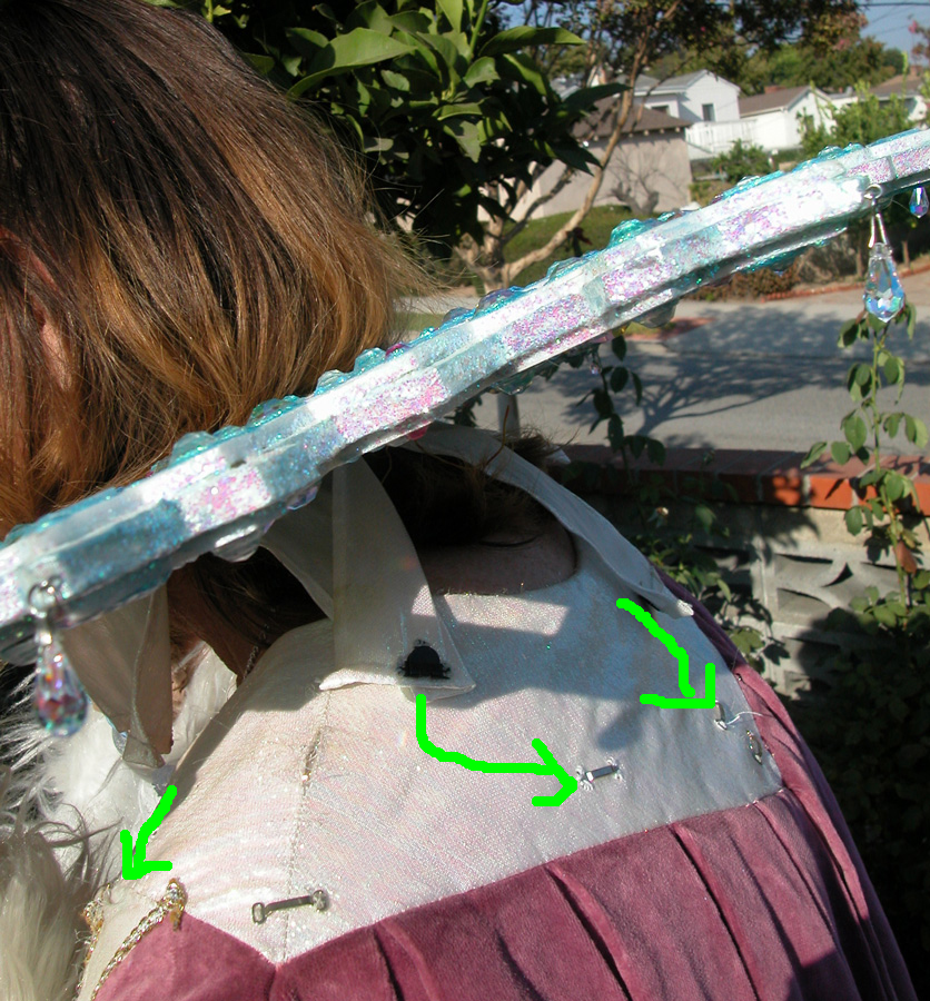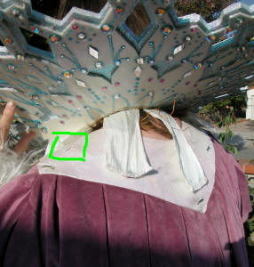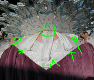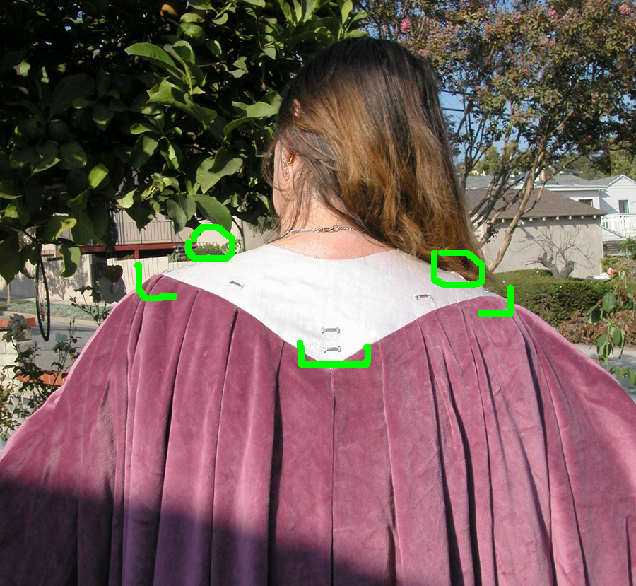 (Robe stretched out) Identifying the hooks on the under collar: