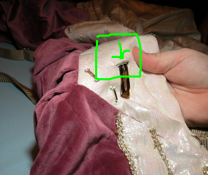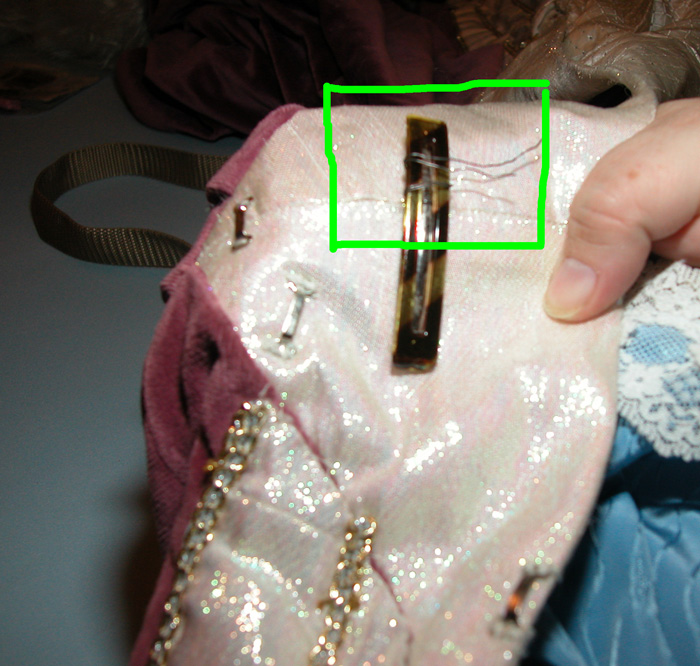 Circles show where the suspender length adjusters are.