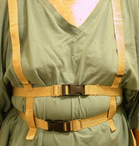 Shows the harness on over the slip. |