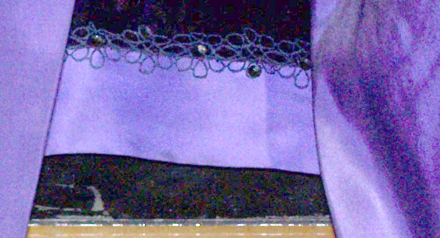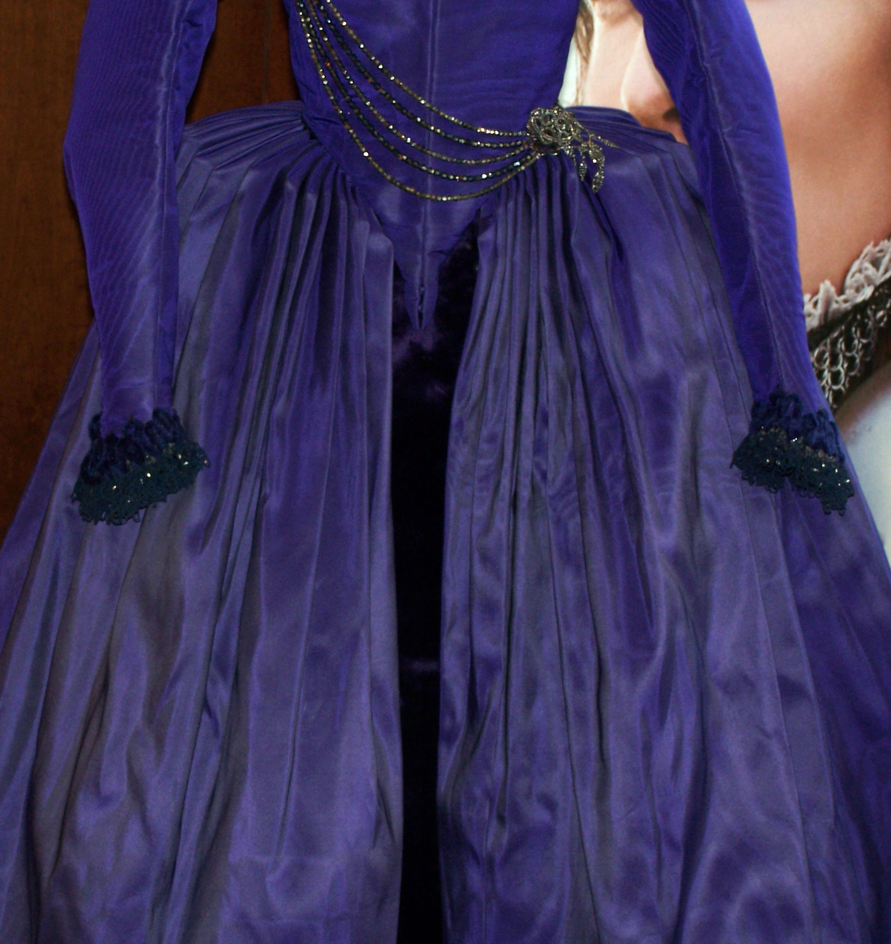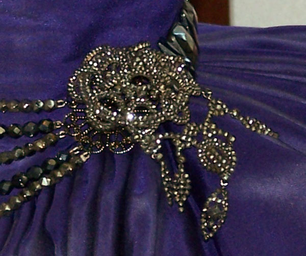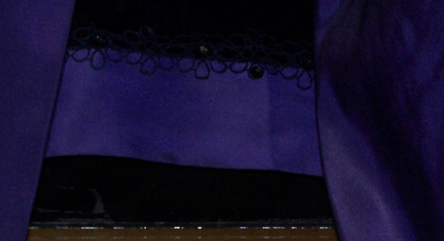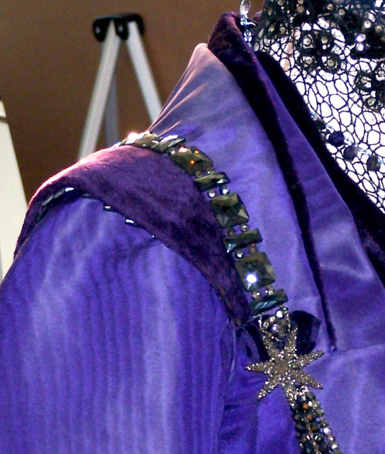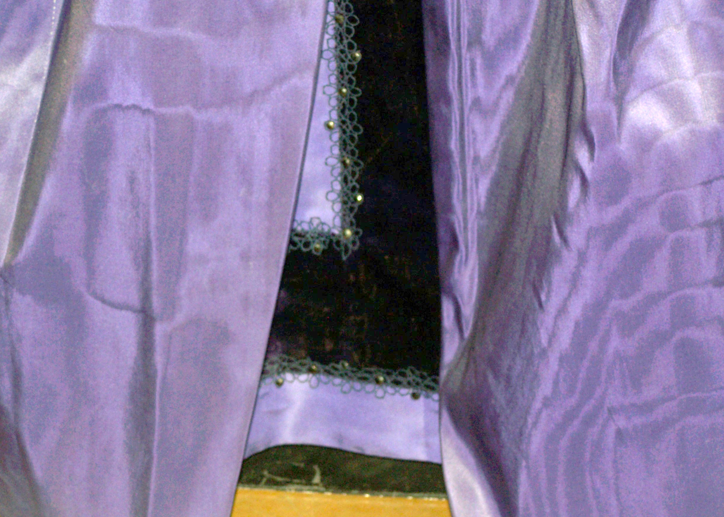 Purple silk moiré robe, growing in stature to unapproachable scale and